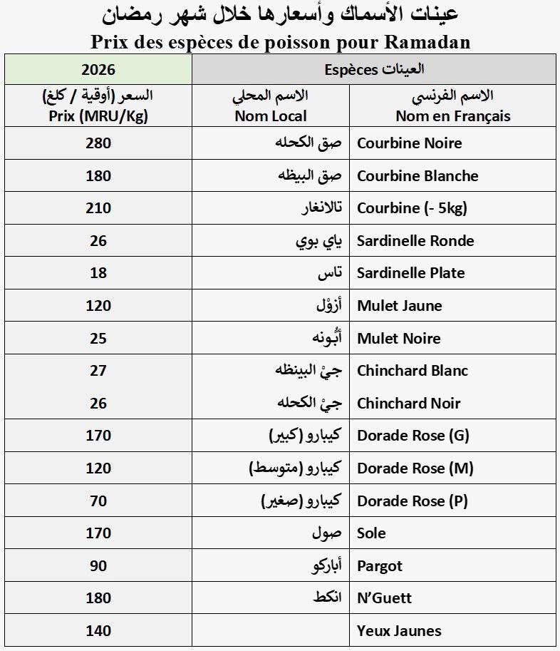 وزارة الصيد تحدد أسعار الأسماك ضمن حملة “رمضان 2026” (وثيقة)