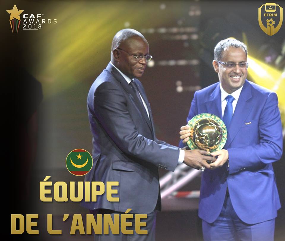 توج المنتخب الموريتاني "المرابطون"، بجائزة أفضل منتخب في إفريقيا، في حفل جوائز الاتحاد الإفريقي لكرة القدم 2018، في العاصمة السنغالية دكار.