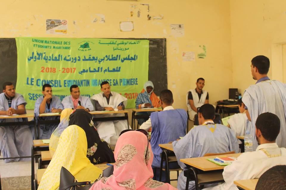 عقد المجلس الطلابي للاتحاد الوطني لطلبة موريتانيا اليوم الأحد 26 نوفمبر 2017، دورته العادية الأولى للعام الجامعي 2017/2018 بمباني كلية العلوم القانونية والاقتصادية.