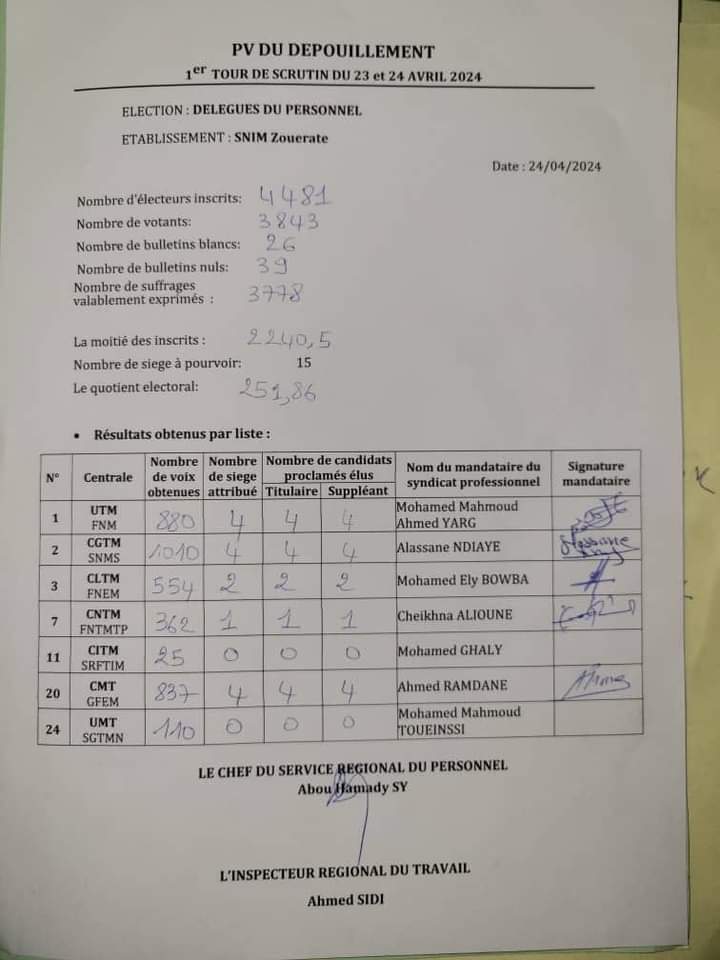 استرجع اتحاد عمال موريتانيا بقيادة الوزير السابق الكوري ولد عبد المولى ، مكانته فى نواذيبو وتعادل مع الكونفدرالية العامة لعمال موريتانيا التي أحكمت قبضتها على ممثلين العمال فى أزويرات و نواذيبو