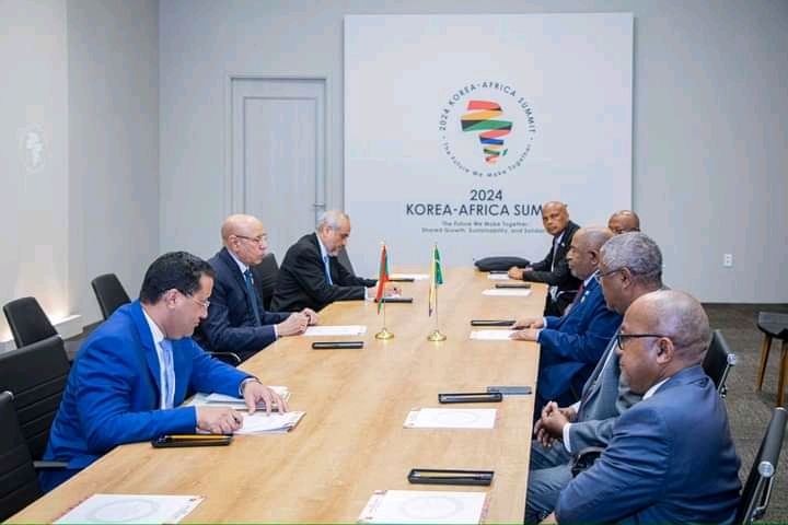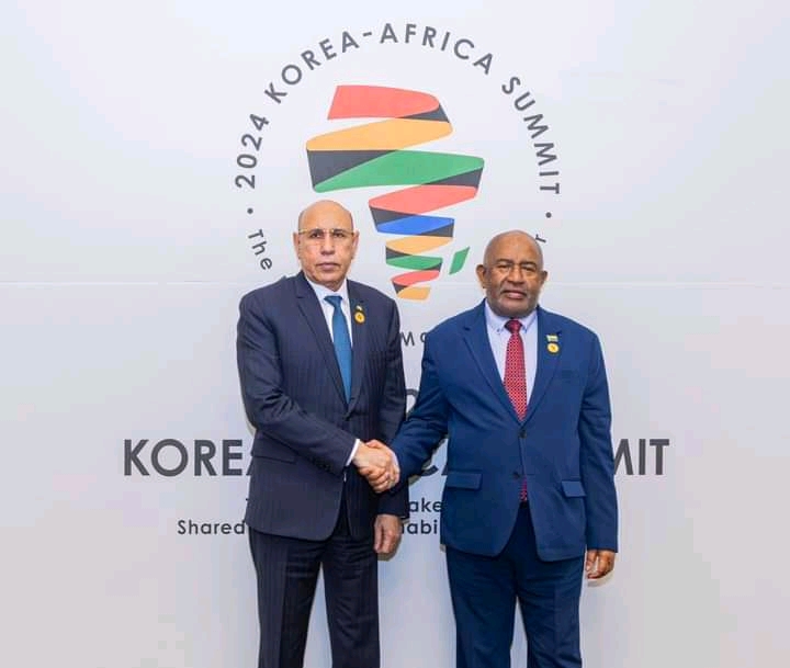 أجرى رئيس الجمهورية، الرئيس الدوري للاتحاد الإفريقي، محمد ولد الشيخ الغزواني، مساء أمس الاثنين على هامش القمة الكورية الإفريقية، مباحثات مع رئيس جمهورية جزر القمر غزالي عثماني. وتناولت المباحثات سبل تعزيز وتطوير علاقات التعاون الثنائي بين البلدين الشقيقين، والرفع من مستوى التعاون بين دول الاتحاد الإفريقي، وكذا العديد من القضايا الإقليمية والدولية ذات الاهتمام المشترك. وكان رئيس الجمهورية محمد ولد الشيخ الغزواني، قد افتتح صباح اليوم القمة الكورية الأفريقية في سيول إلى جانب الرئيس الكوري يون سوك يول. حضر اللقاء الوزير المكلف بديوان، المختار ولد اجاي، ووزير الخارجية والتعاون والموريتانيين في الخارج محمد سالم ولد مرزوك، وسعادة السفير المعتمد في كوريا سيديا الحاج.