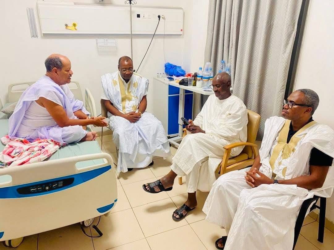 ورافقه في الزيارة الأمين العام للحزب فال إنكيسالي والمستشار الإعلامي محمد لحليفه ولد محمد لحمد، حيث عبّر رئيس الحزب عن تمنياته له بالشفاء العاجل، مشيدًا بتفانيه في خدمة الحزب.