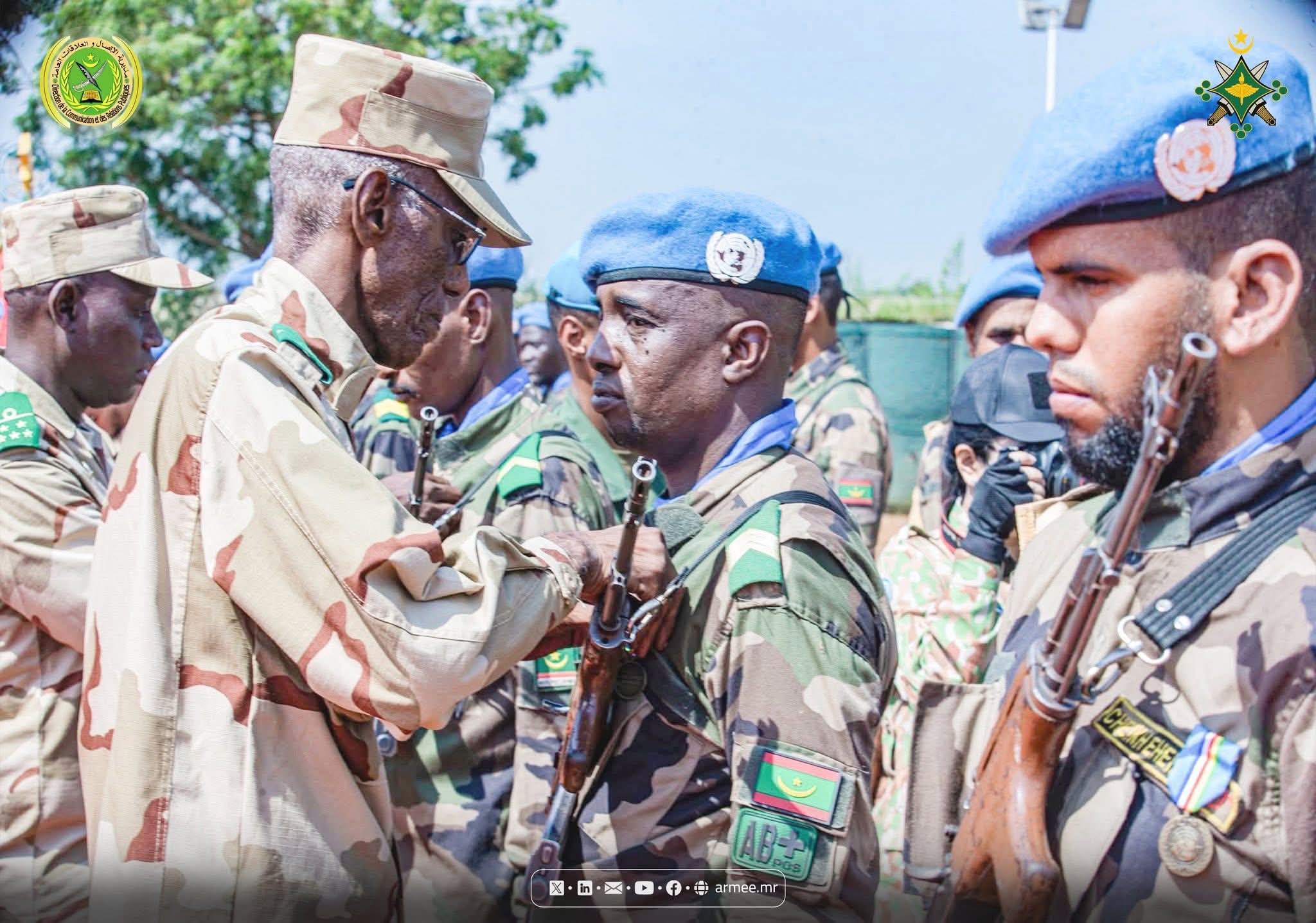 وشحت بعثة الأمم المتحدة متعددة الأبعاد لتحقيق الاستقرار في إفريقيا الوسطى (مينيسكا)، اليوم الأربعاء 19 نوقمبر 2025، في مقر قيادة البعثة ببانغي، الكتيبة الموريتانية التاسعة لحفظ السلام، بمناسبة إنتهاء مهمتها، وقد تم التوشيح بإشراف قائد القوة الأممية المساعد.