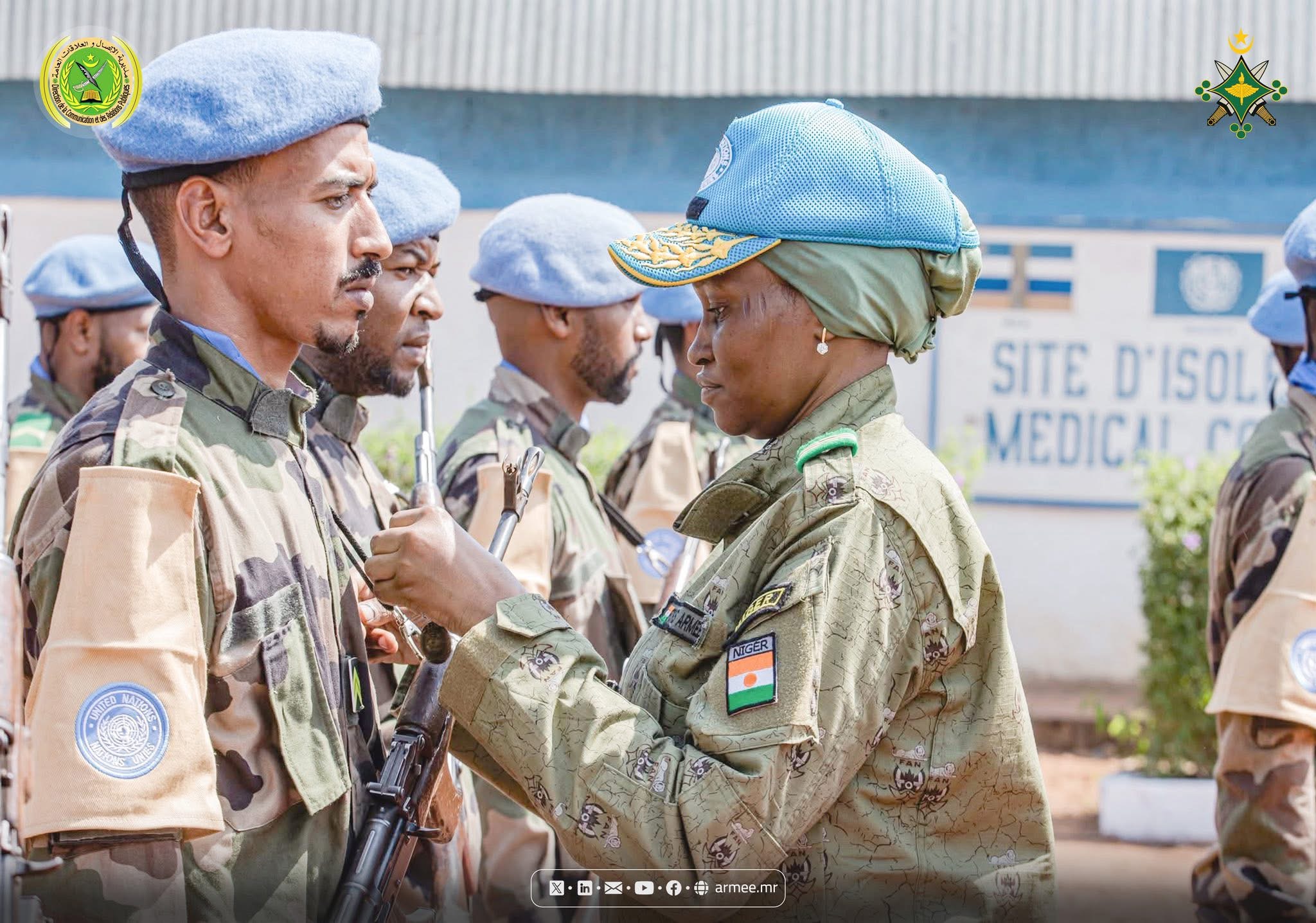 وشحت بعثة الأمم المتحدة متعددة الأبعاد لتحقيق الاستقرار في إفريقيا الوسطى (مينيسكا)، اليوم الأربعاء 19 نوقمبر 2025، في مقر قيادة البعثة ببانغي، الكتيبة الموريتانية التاسعة لحفظ السلام، بمناسبة إنتهاء مهمتها، وقد تم التوشيح بإشراف قائد القوة الأممية المساعد.
