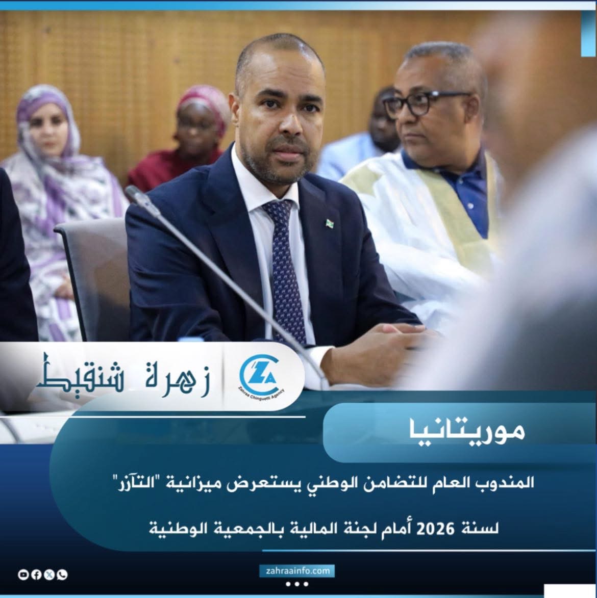 قدم المندوب العام للتضامن الوطني ومكافحة الإقصاء، سيدي ولد مولاي الزين، عرضًا أمام لجنة المالية بالجمعية الوطنية حول مشروع ميزانية “التآزر” لسنة 2026، وذلك بحضور الأمين العام للمندوبية أنوي ولد الشيخ ولد أعبيدي والطاقم الفني.
