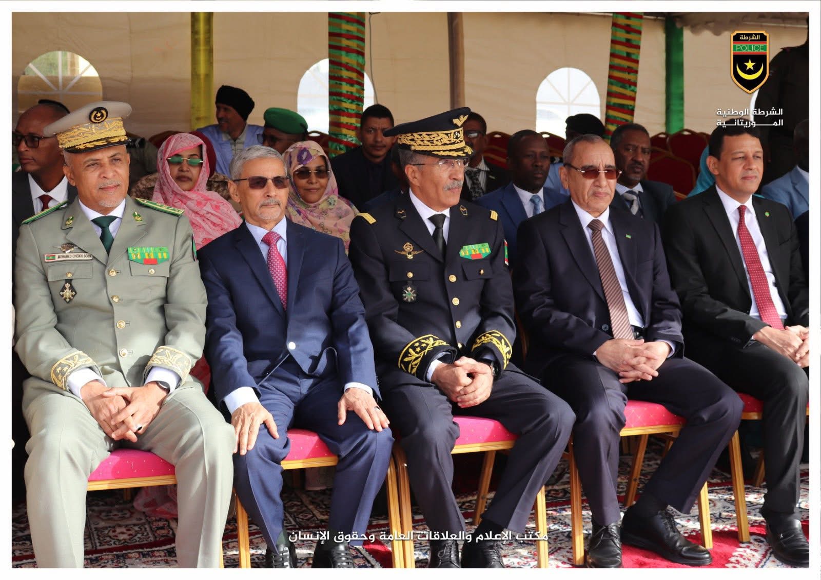 وقد بدأ الحفل بإستعراض معالي وزير الداخلية واللامركزية محمد احمد ولد محمد الأمين رفقة المدير العام للأمن الوطني الفريق محمد لحريطاني تشكيلات من الشرطة الوطنية أدت لهما تحية الشرف قبل أن يصافحا عددا من الضباط وضباط الصف والوكلاء.