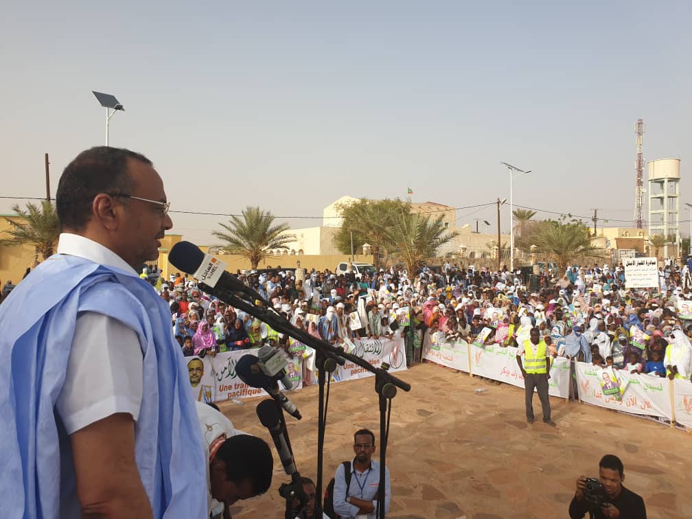 وقال ولد بوبكر خلال مهرجان جماهيري عقده مساء اليوم الاثنين بالمدينة إن الحضور الكبير للمهرجان دليل على تطلع الموريتانيين للتغيير ووضع حد للأوضاع السيئة التي يعاني منها البلد، مستغربا أزمة العطش التي تعاني منها عاصمة ولاية تكانت.