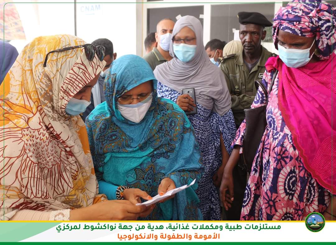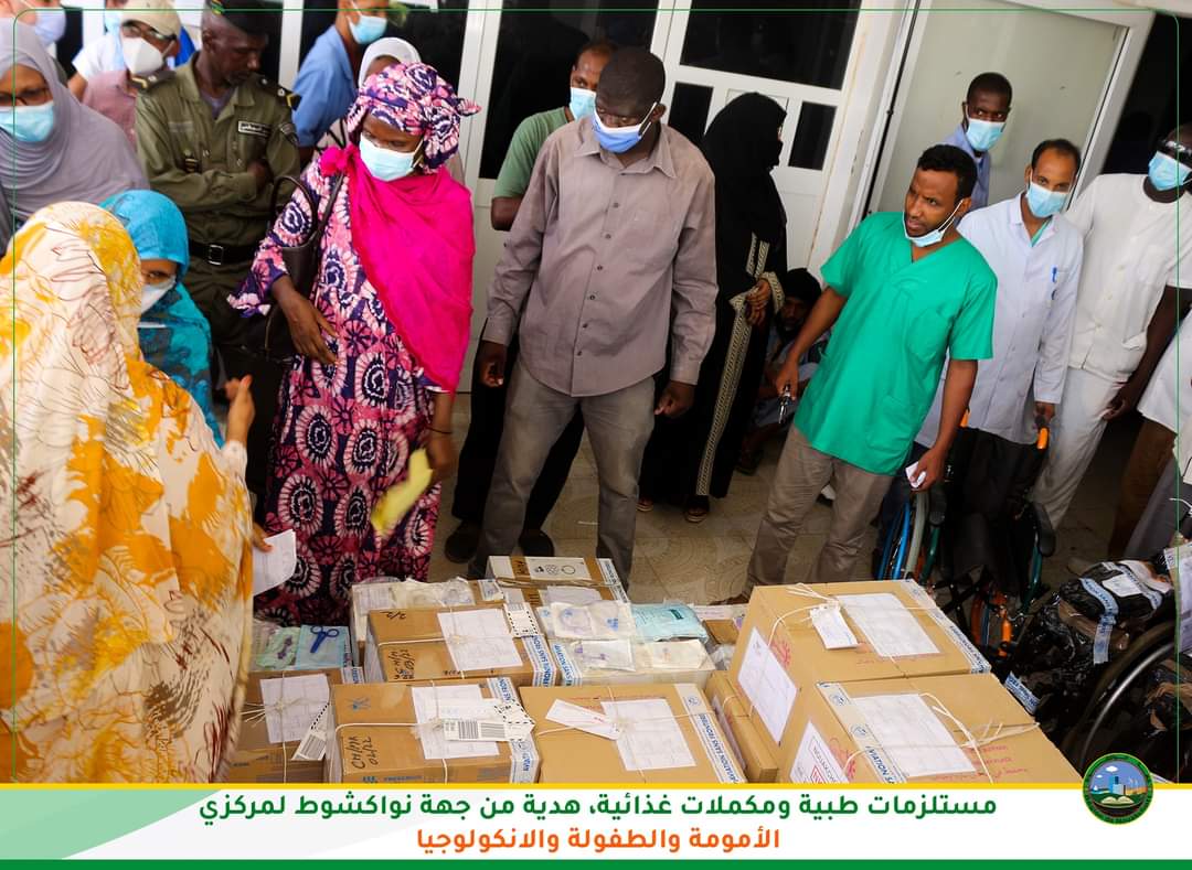 أشرفت رئيسة جهة انواكشوط فاطمة بنت عبد المالك صباح اليوم الاثنين 6 سبتمبر 2021 على تسليم مساعدات طبية وكراسي متحركة وحليب مجفف لصالح المستشفى الوطني ومركزي الأم والطفل والأنكولوجيا.