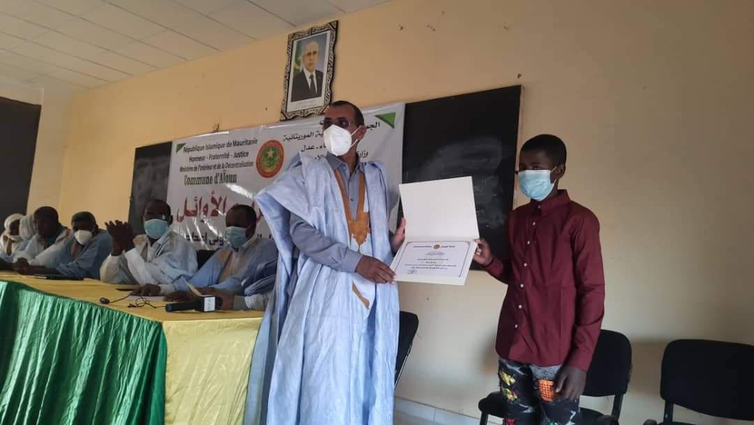 - حصل صاحب الرتبة الأولى؛ السيد، سيدي حدنا اصديك على شهادة تقديرية مع مبلغ 150.000أوقية قديمة.