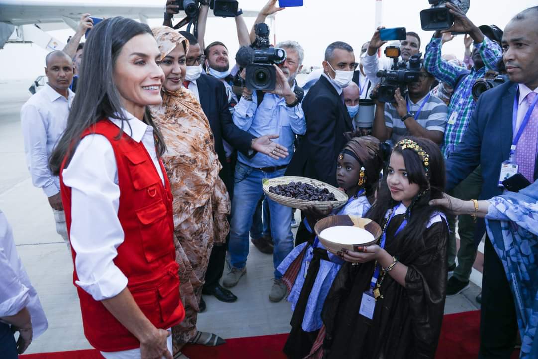 وكانت السيدة الأولى الدكتورة مريم فاضل الداه على رأس مستقبلي الملكة، بمطار انواكشوط الدولي "أم التونسي" محاطة بالأمينة العامة لوزارة الشؤون الخارجية والتعاون و الموريتانيين في الخارج العالية منت يحي منكوس، والسفير الموريتاني المعتمد في مدريد كان بوبكر، وسفيرة إسبانيا في موريتانيا ماريا الفاريز دولا روزا.