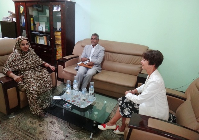وعقدت السفيرة الألمانية بموريتانيا جلسة مطولة مع مدير المعهد الموريتانى للبحث العلمى ابنته بنت الخالص، تناولت واقع المركز، والجهود المبذولة من الحكومة من أجل حفظ وأرشفة التاريخ المروى للبلد، ومعالجة المكتبات التاريخية، وطرحها أمام الباحثين من أجل الاستفادة منها.